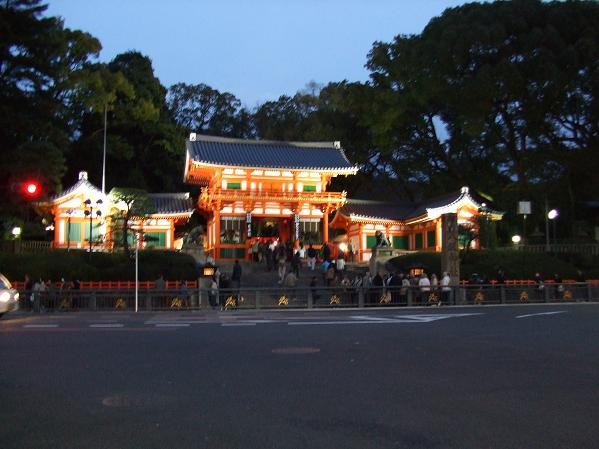 八坂神社 屋台で肉おにぎり?食べた。ライトアップがきれいだよ。