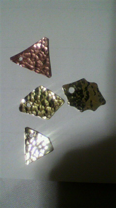 ピアス作りたかったので金属板を芋槌で打って作りました