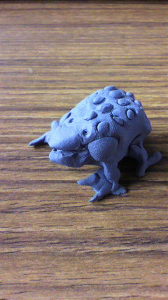 練りゴムで、とても気持ち悪いピパピパというカエルを作りました。