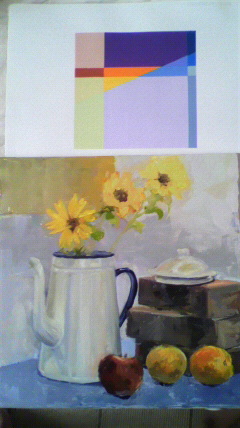 一年前に描いた平面と昨日描いた油絵